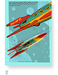 Very illustrative, colorful 5" x 7" cards feature a wonderful selection of vintage space toys set against a space age pop background. Cards are blank and each card has the toy's info on the back and comes in a clear sleeve with envelope.